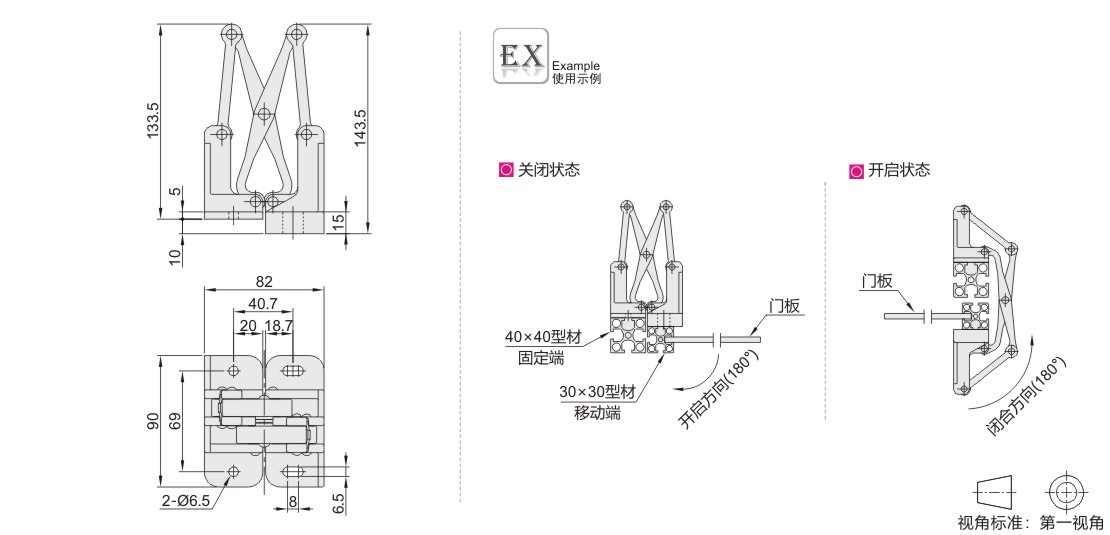 隐藏式铰链 U型 四轴型 铝框架专用 内装门 ADC12 烤漆