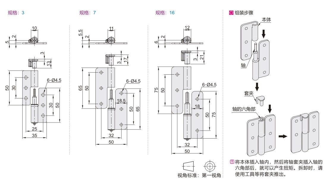 拆卸式铰链 平型 阻尼拔插型 圆孔型 SUS304 滚筒抛光