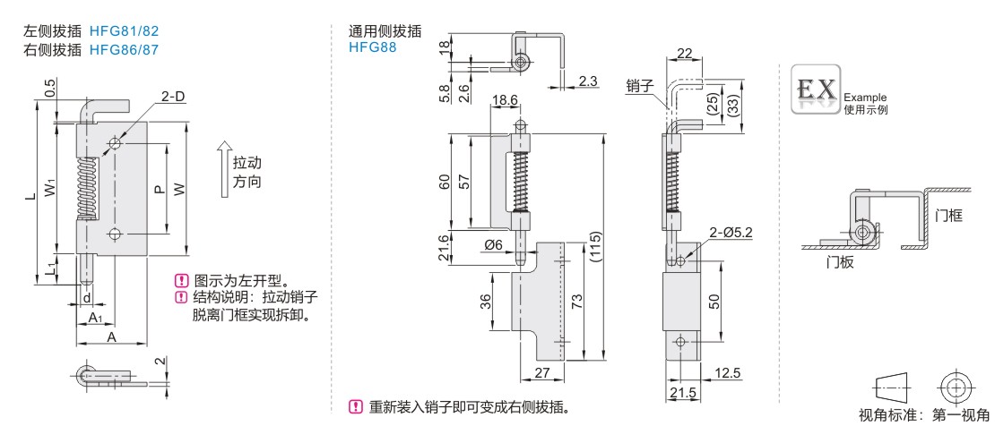 | HFG81 | 单页弹簧型 | 圆孔型 | 内装门 | 左侧 | SPCC | 镀锌 |