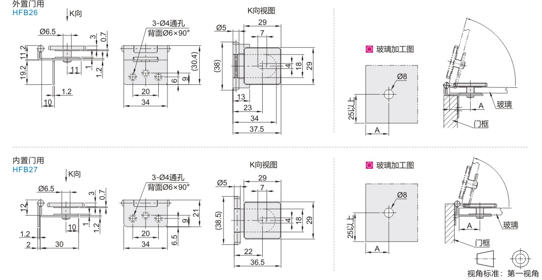 | HFB26 | 外置门用 | 锥孔型 | 无 | 钢+ZDC | 镀铬 |