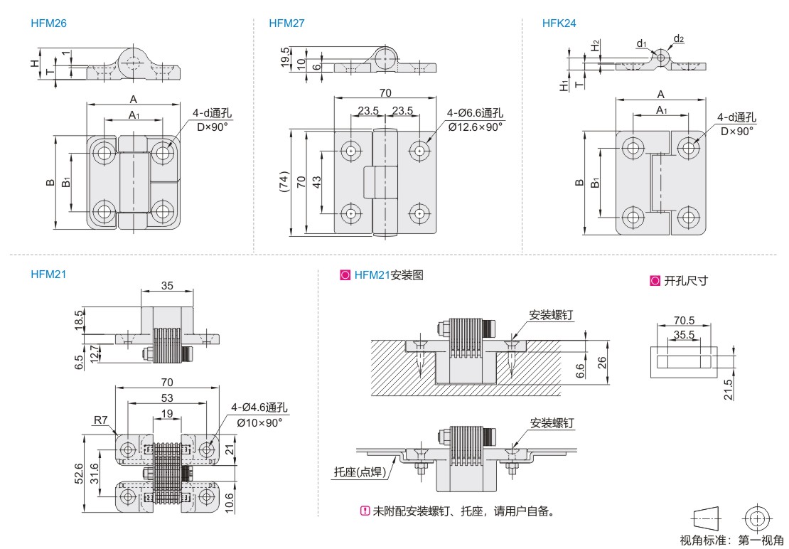 | HFM21 | 阻尼型 | 锥孔型 | 任意角度定位型 | ZDC | 镀砂铬 |