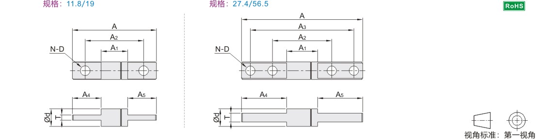 医疗 一字型扭矩蝶形铰链 阻尼型 嵌入式 对称型•圆孔型