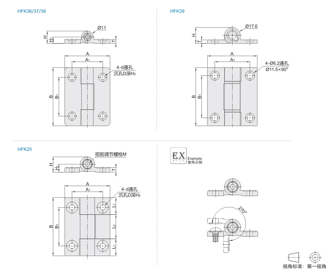 | HFK36 | 可调阻尼型 | 沉孔型 | 任意角度定位型 | 普通型 | ZDC | 喷漆(黑色) |