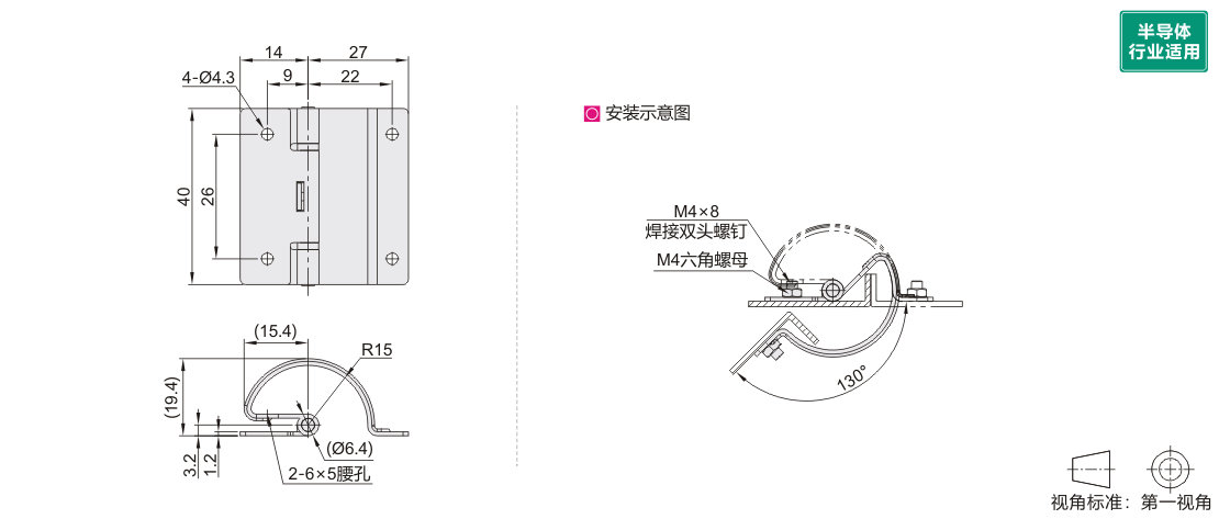 扭矩蝶形铰链 工字型 圆孔型 多用途运动型/内装制动阻尼型 内装制动自由型 SUS304 滚磨抛光