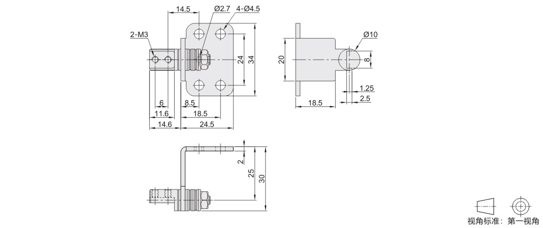 L型扭矩蝶型铰链 圆孔型+螺纹孔