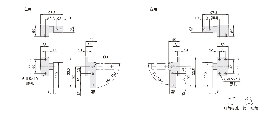 天地铰链 L型 展柜门 厨房设备用 升降型 门推转动型 安装通用侧 ZDC 镀铬