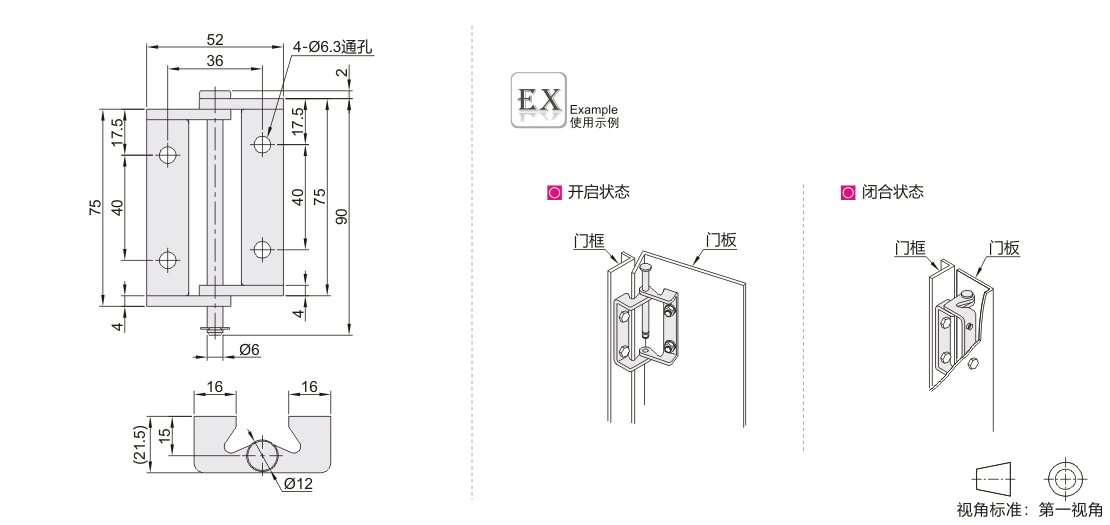 万能铰链 平型 隐藏式安装 安装通用侧 SUS304