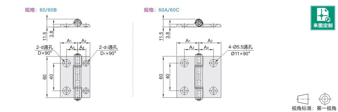铝合金蝶形铰链 平型 铝框架专用 锥孔型 左右偏置型 A6063-T5 本色阳极氧化