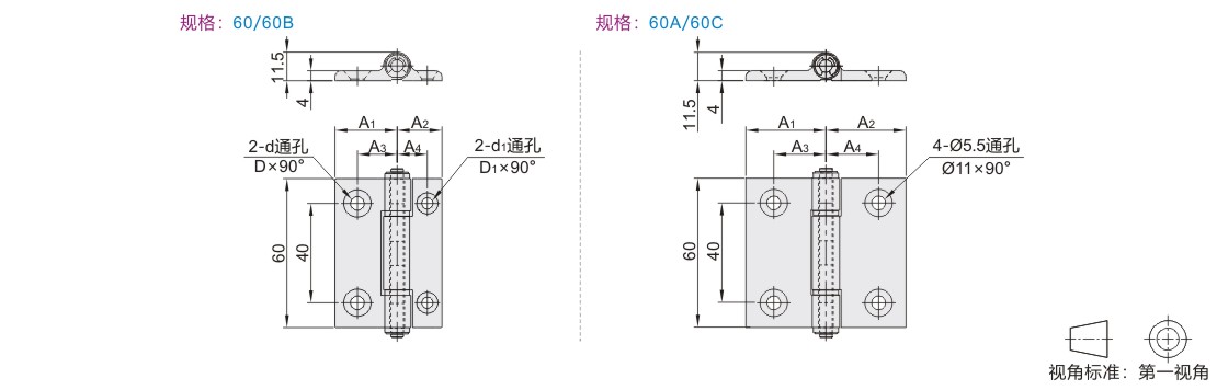 不锈钢蝶形铰链 平型 左右偏置型 锥孔型 铝框架专用 镜面抛光 SCS13