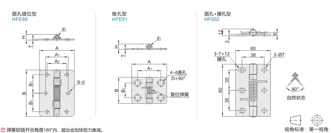 弹簧蝶形铰链 平型 方型 圆孔错位型/锥孔型