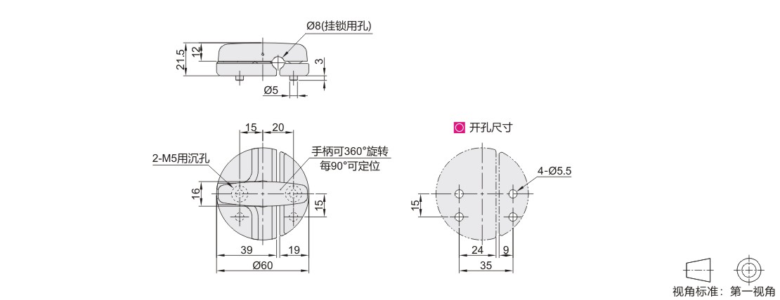 舱门锁 把手转动式 带挂锁孔 无锁芯