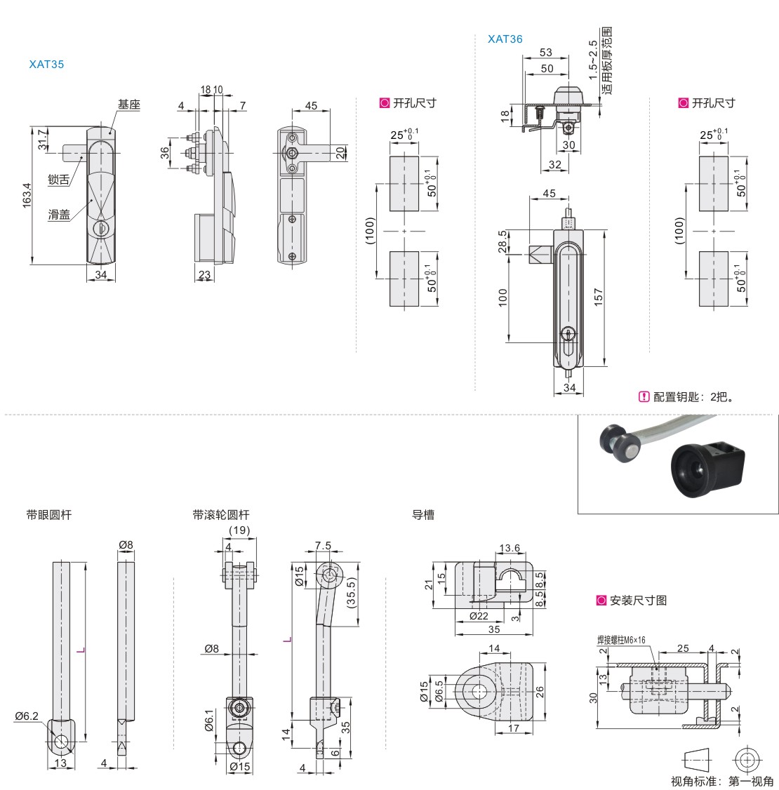 连杆锁 把手拉起转动式 三点式 带锁芯/防尘锁芯 黑色