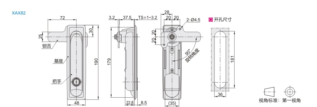 | XAX81 | 把手拉起转动式 | 带锁芯 | PA | Q235 | 皮纹处理 | 镀蓝白锌 | 0.310 |