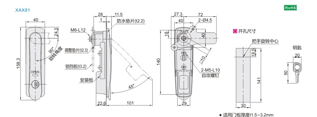 锁舌孔尺寸: □ 10×10