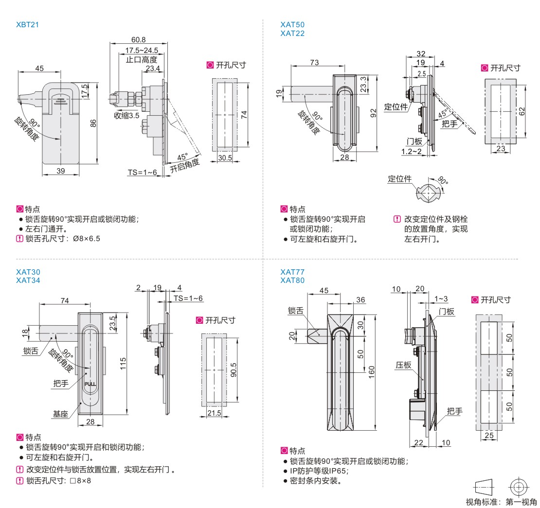 | 基座/把手 | 锁舌 | 基座/把手 | 锁舌 | ||||