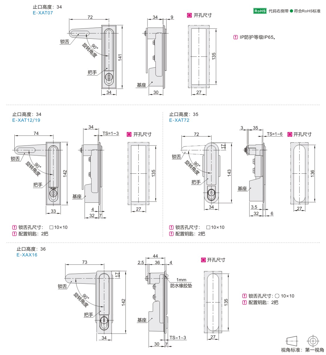 | 基座/把手 | 锁舌 | 基座/把手 | 锁舌 | |||||