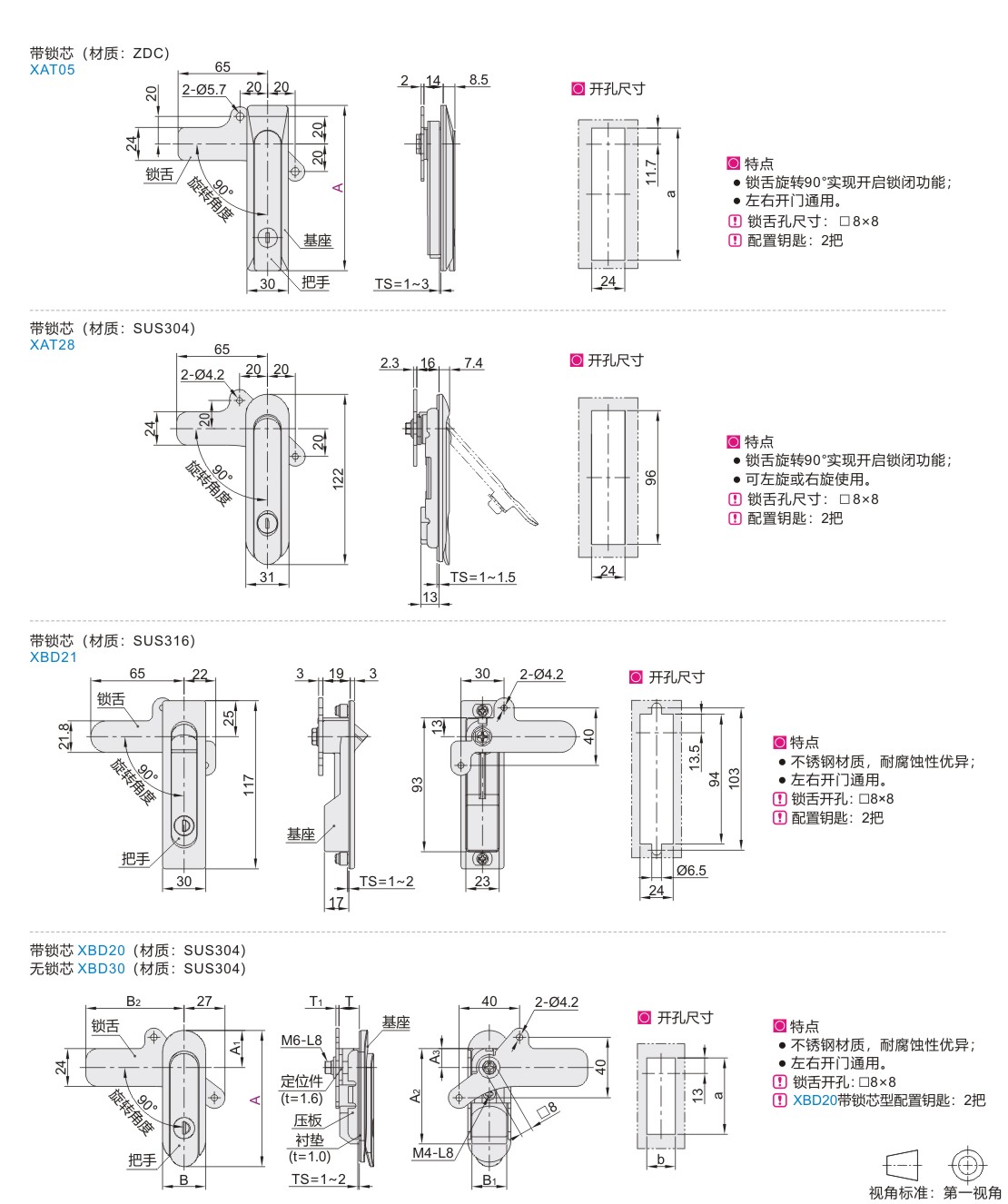 带锁芯 | ZDC | Q235 | 镀亚光铬 | 镀蓝白锌 | ||