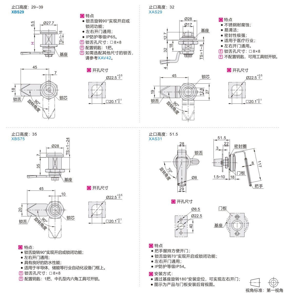 | XBS29 | 20系列 | 29~39 | 三角形锁芯 | SUS304 | — | 拉丝 | — | ||||