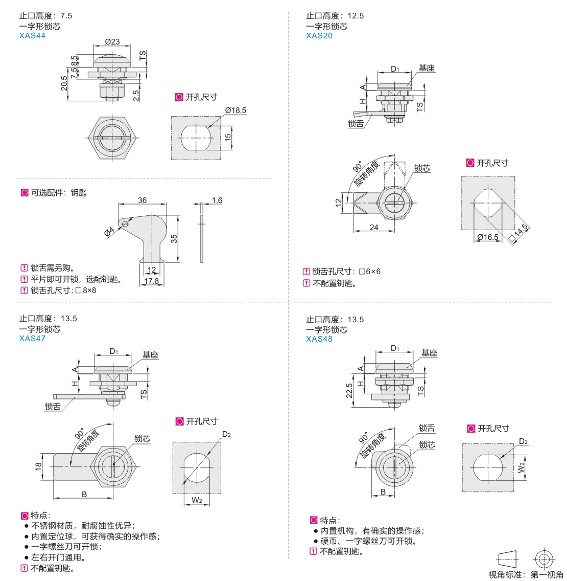 | XAS44 | 20系列 | 7.5 | 一字形锁芯 | ZDC | ZDC | 镀亮铬 | 镀亮铬 | ||