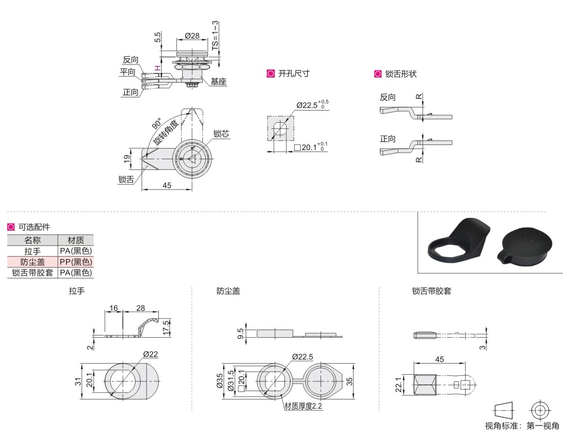 圆柱锁 20系列 止口高度10~44 可选配件