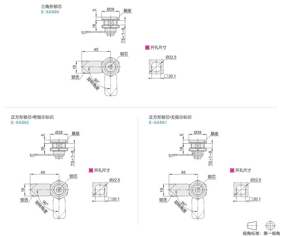 经济型圆柱锁 三角形锁芯/正方形锁芯 20系列•止口高度18