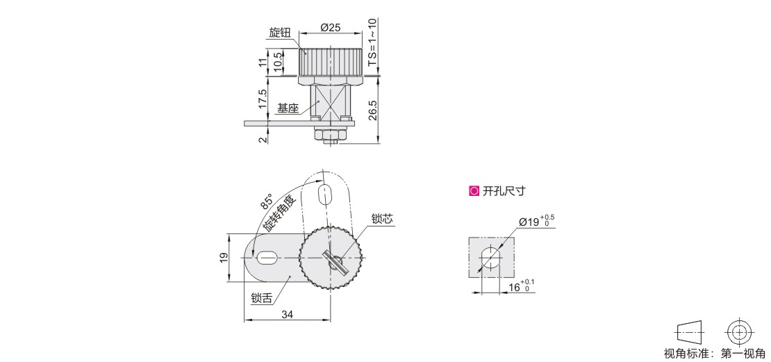 旋钮圆柱锁 一字形锁芯