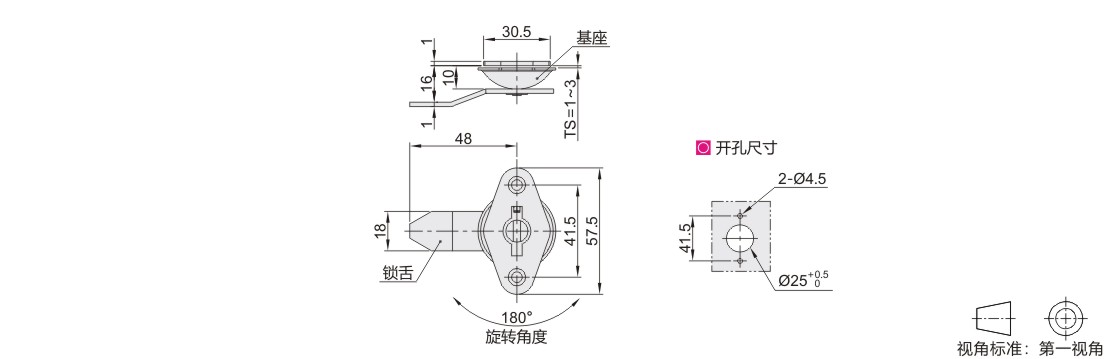 ● 锁舌旋转180°实现开启或锁闭功能;