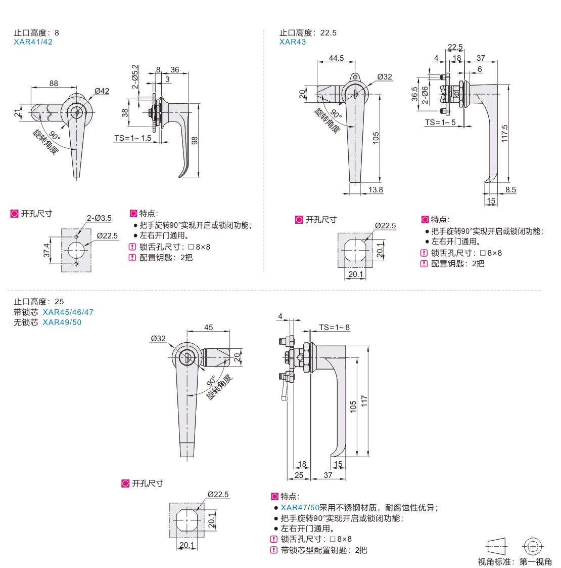 | XAR45 | 25 | 带锁芯 | 镀亮铬 | 镀蓝白锌 | 0.2 | |||||