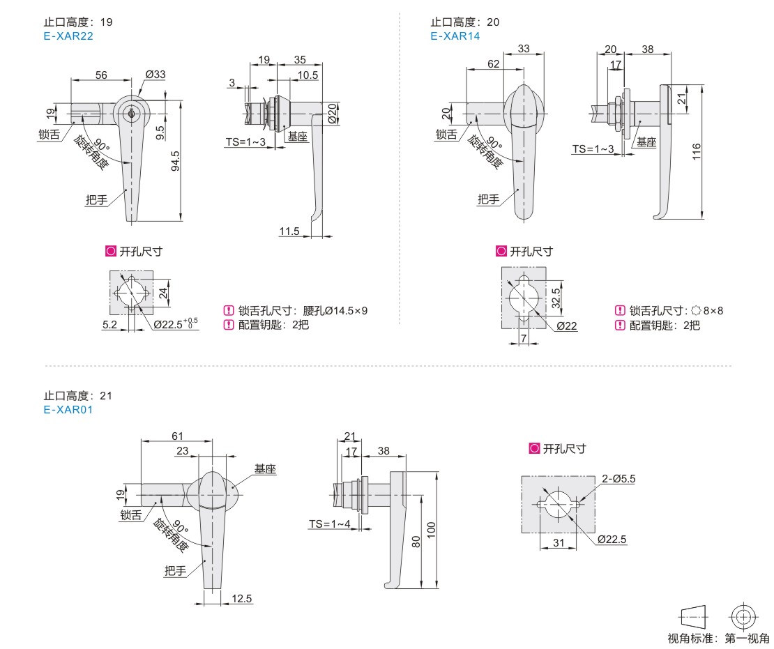 | E-XAR22 | L型把手 | 19 | 一字形锁芯 | ADC | Q235 | 镀亮铬 | 镀白锌 | |||||||