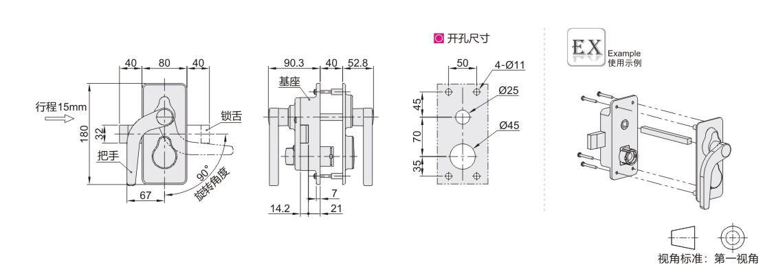 内外用把手锁 L型把手 单点式 带锁芯