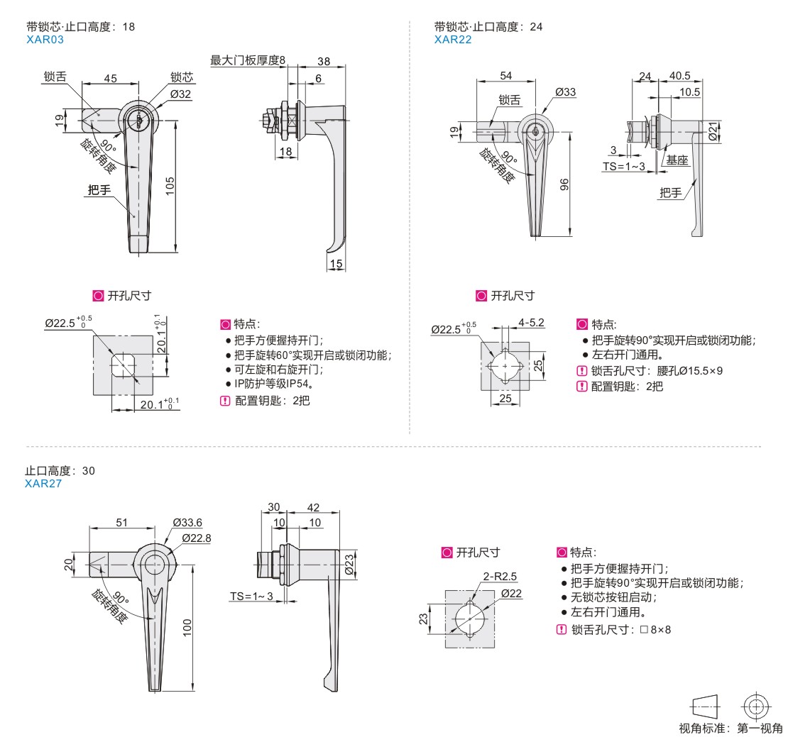 | XAR03 | L型把手 | 18 | 带锁芯 | ZDC | Q235 | 镀铬 | 镀锌 | 0.23 | ||