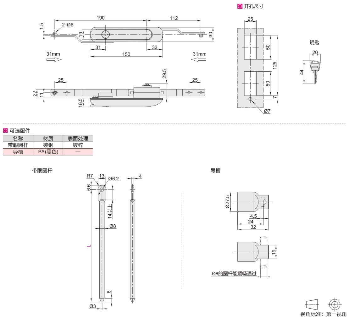 连杆锁 把手拉起转动式 带锁芯 两点式 ZDC