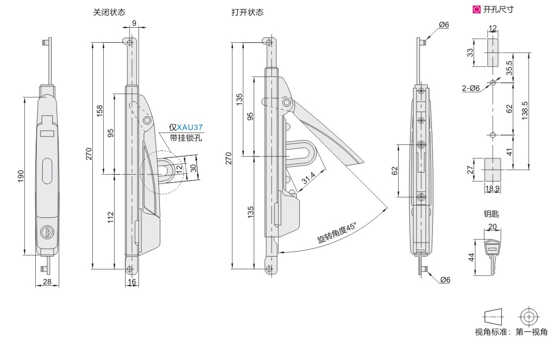 连杆锁 手柄快启带连杆型 两点式 ZDC 电泳黑色