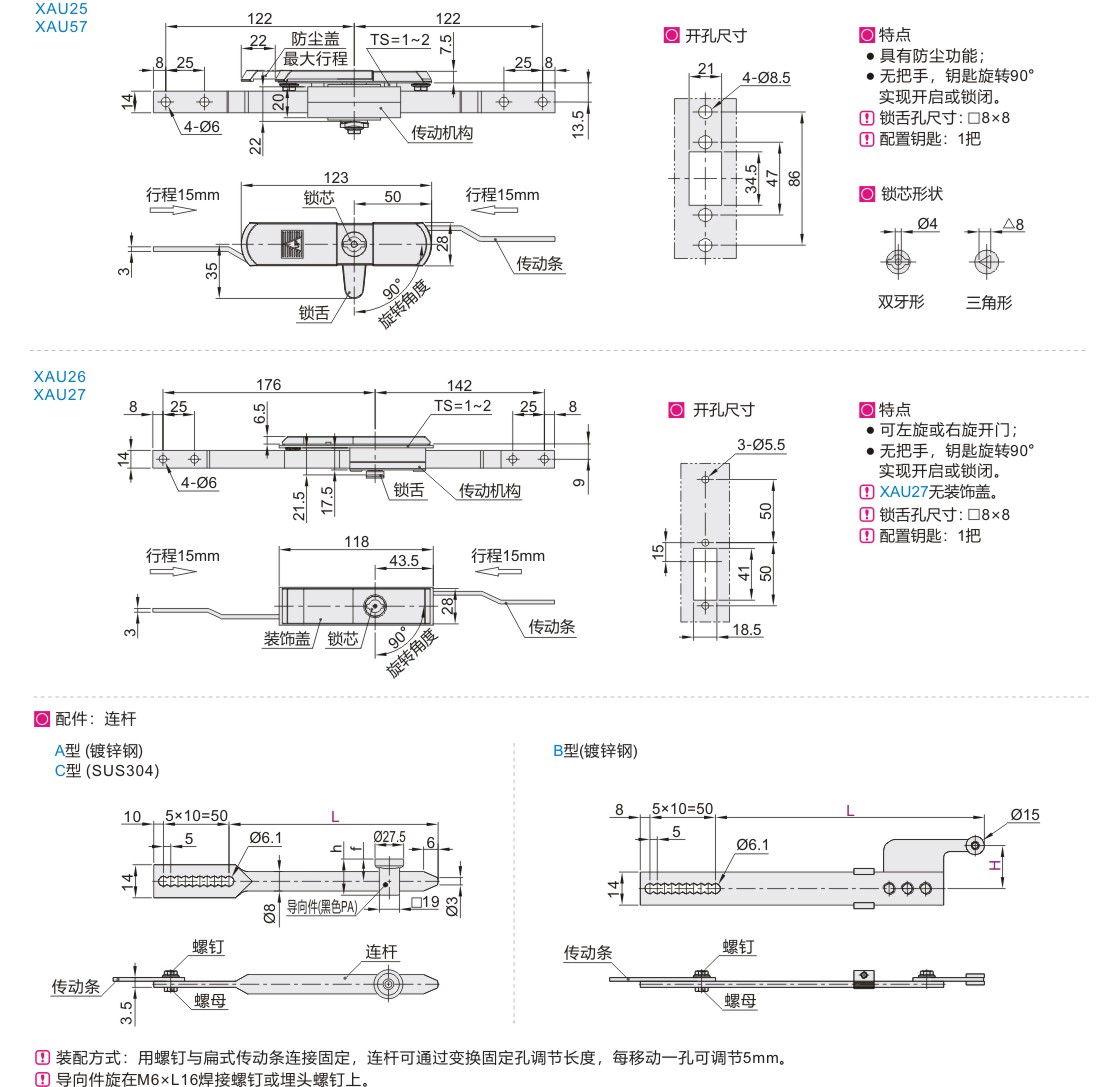 | XAU25 | 钥匙驱动型 | 双牙形锁芯 | ZDC | ZDC | ZDC | Q235 | 纳米亚光白 | 镀蓝白锌 | 0.316 | ||