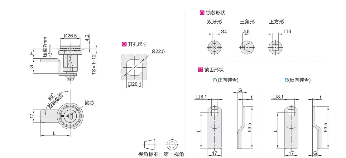 | 基座 | 锁芯 | 锁舌 | 基座 | 锁芯 | 锁舌 | |||||