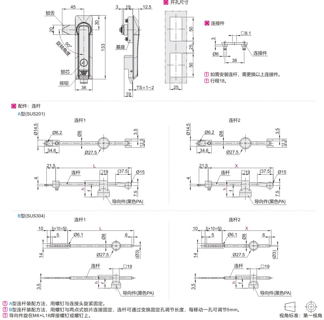| XAU45 | 把手按压转动式 | 方形独立式按钮 | 带锁芯 | PA66+30%GF | PA66+30%GF | SUS304 | 黑色 | 黑色 | — |