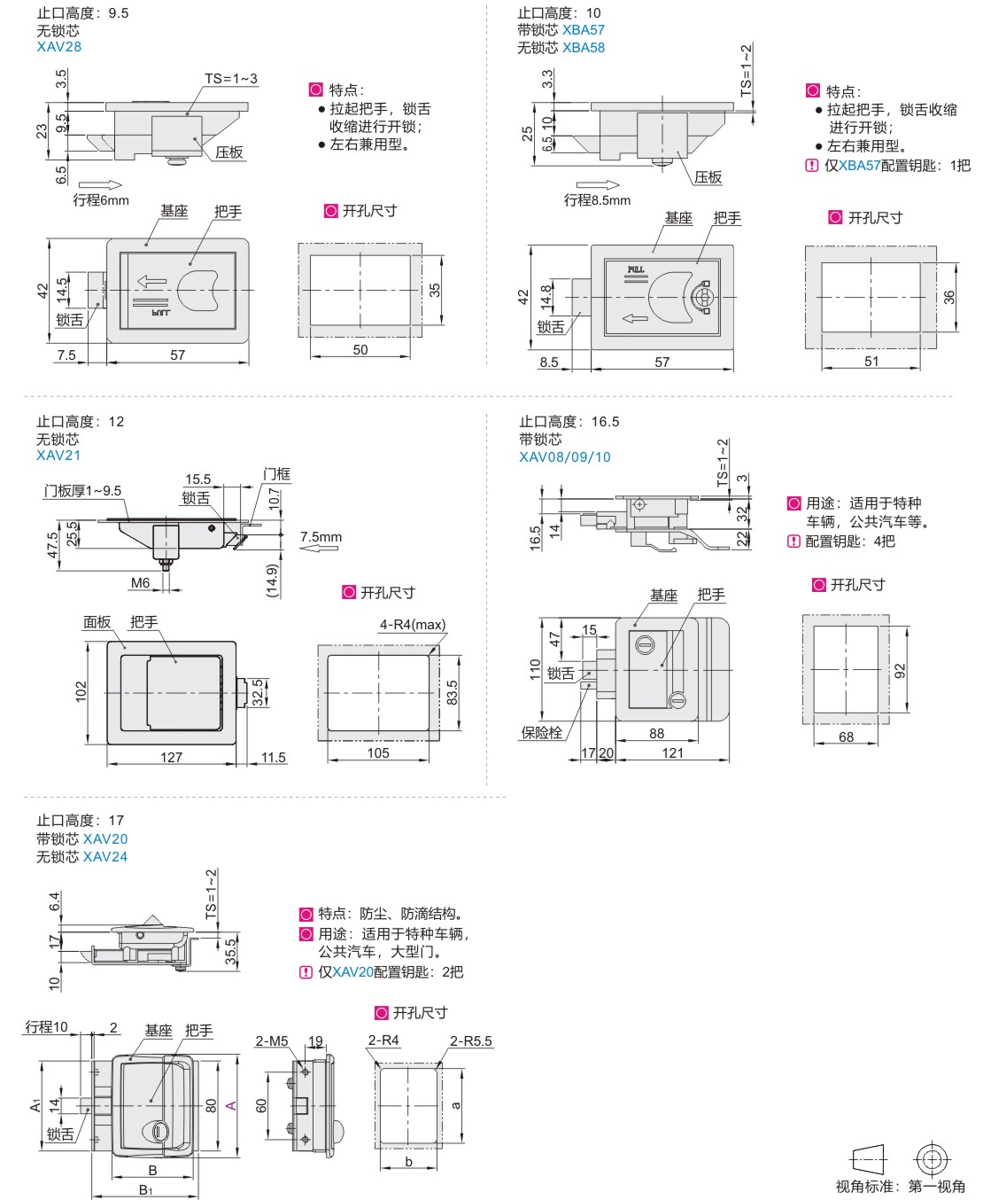 | XAV28 | 插销式 平面型 把手 |