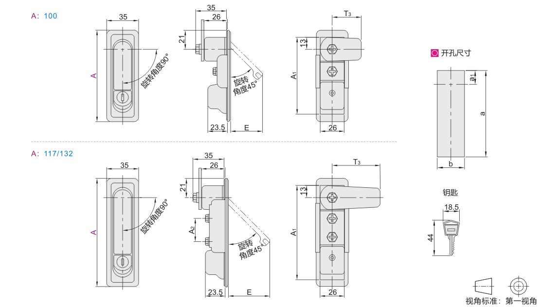 防水平面锁 把手按压转动式 直角型 单点式 带锁芯 ZDC