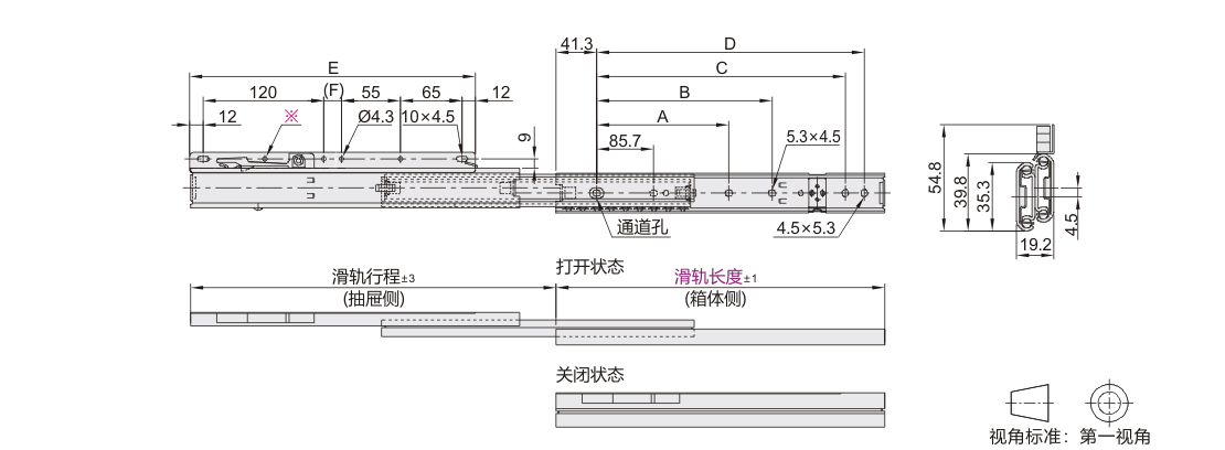 滑轨区分左右,本图显示为左用,右用与此左右对称。