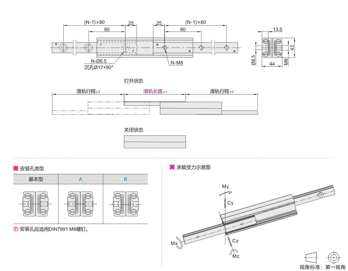 Cy/Cz代表内轨、滑块完全伸出时所能承受的重量。