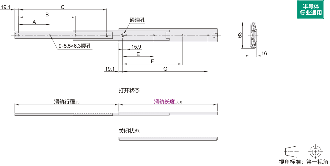 工业滑轨 63系列 三节式 闭合保持 SPCC