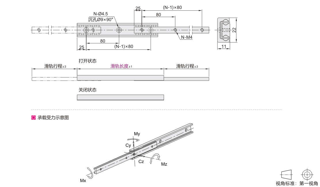 工业滑轨 22系列 二节式 双向拉开 CF53