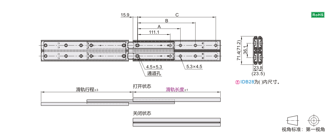 | IDB27 | 双排三节式 | 全长伸展 | 71.4 | SPCC | 镀锌(蓝白) |