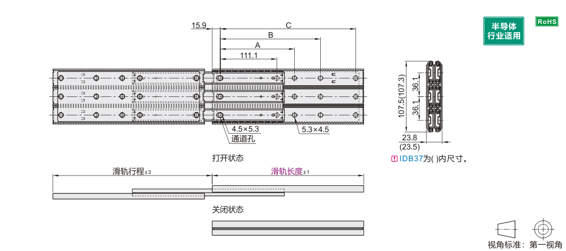 | IDB36 | 三排三节式 | 全长伸展 | 107.5 | SPCC | 镀锌(蓝白) |