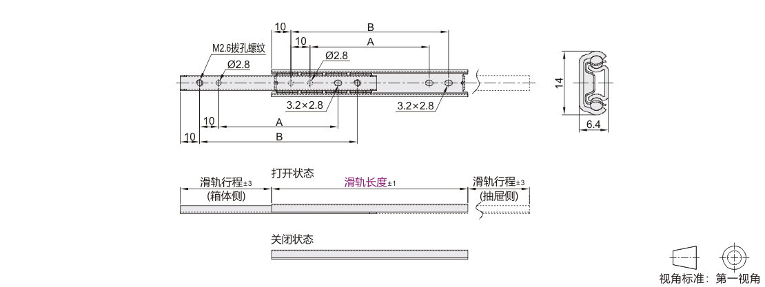 工业滑轨 14系列 二节式 双向拉开 SUS304