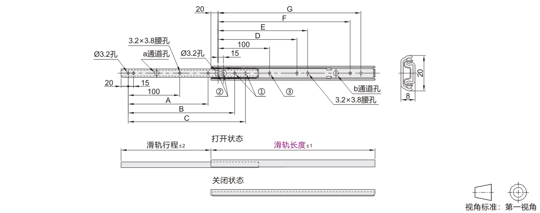 工业滑轨 20系列 二节式 SUS304