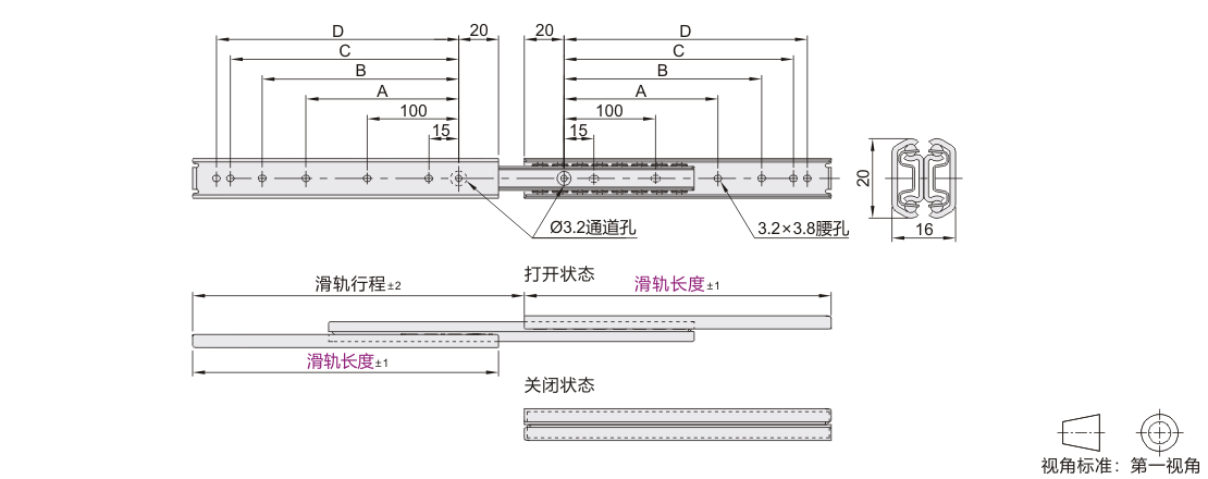 | IDA62 | 三节式 | 全长伸展 | 20 | SUS304 | — |