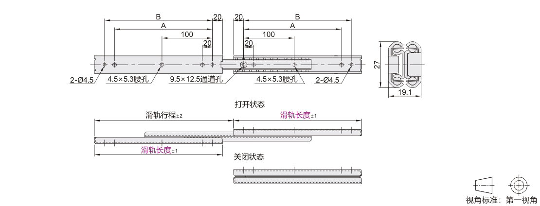 工业滑轨 27系列 三节式 闭合保持 SUS304
