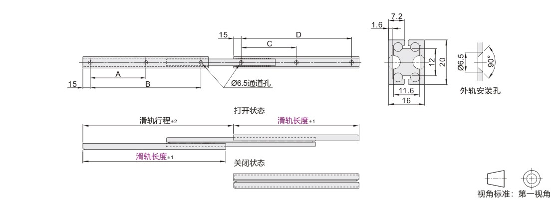 | Y-PCB01 | 三节式 | 全长伸展 | 20 | A6063 | 本色阳极氧化 |