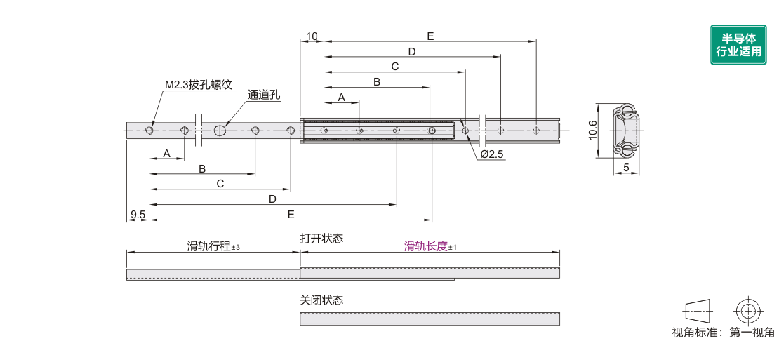 ●宽10.6mm的超小型滑轨;